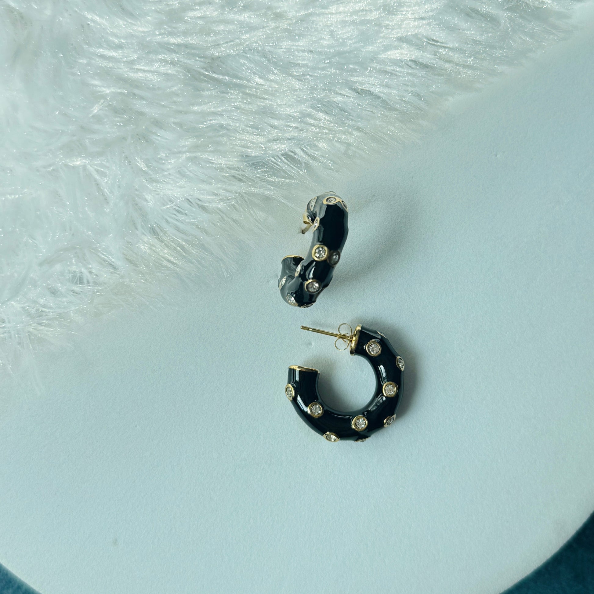 Made from premium anti-tarnish stainless steel, these striking earrings feature a black base accented with sparkling white stones, creating a bold and elegant contrast. Lightweight and durable, they’re perfect for everyday wear or special occasions, adding a touch of sophistication and style to any outfit. Their unique combination makes them a standout accessory.